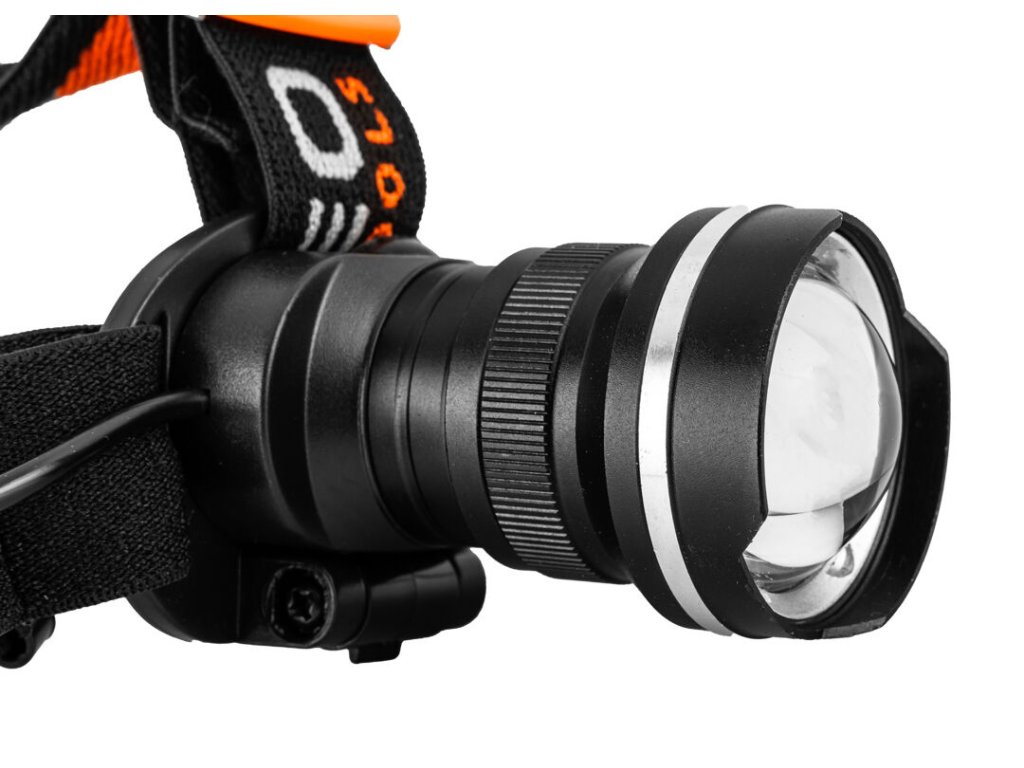 Mimořádně výkonná (400 lumenů) čelová svítilna NEO vybavená vysoce kvalitní LED Cree R5 o výkonu 5 W.