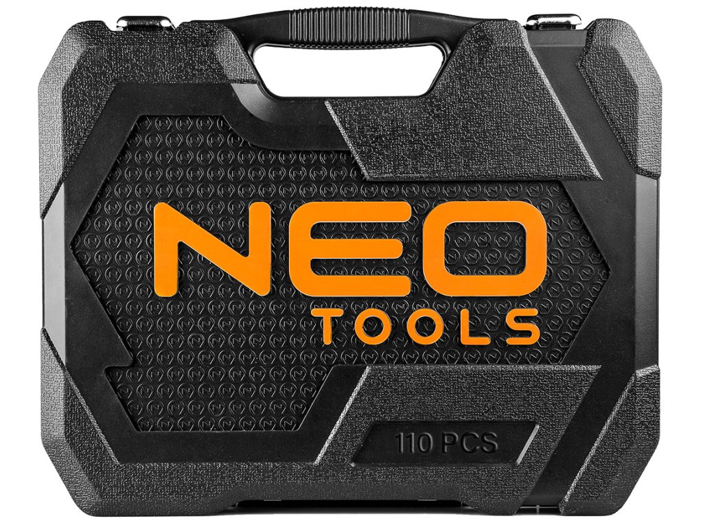 Sada nástrčných klíčů 1/2" a 1/4" NEO se skládá ze 110 prvků vyrobených z vysoce kvalitní chrom-vanadiové oceli.