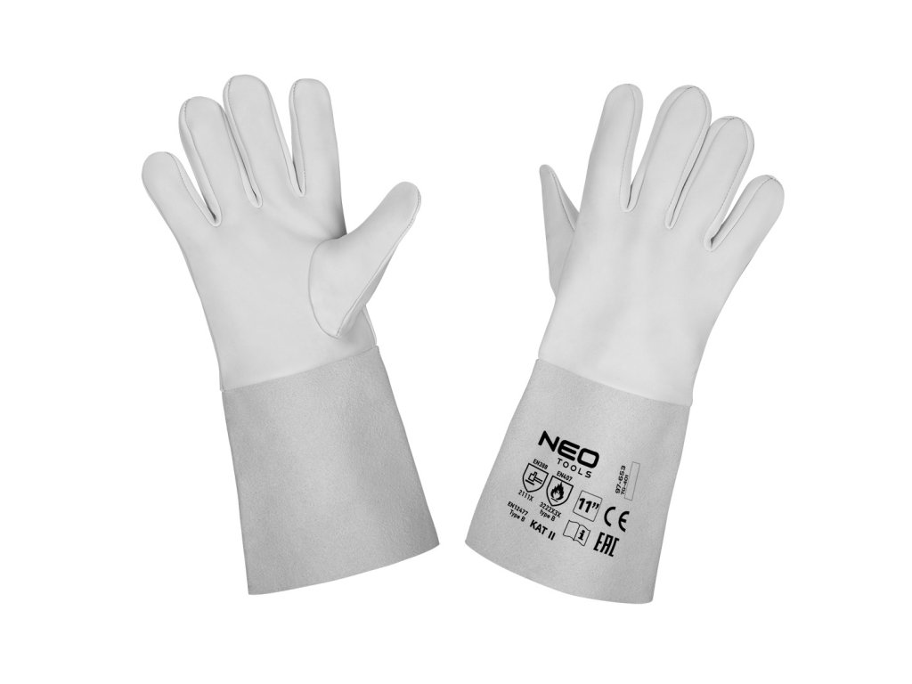 Svářečské rukavice NEO ve velikosti 11" poskytují ochranu rukou před nepříznivými pracovními podmínkami.