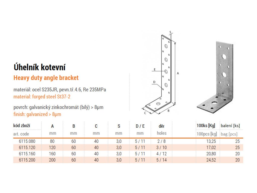 Úhelník kotevní UK2 80x60x40x3mm Zn