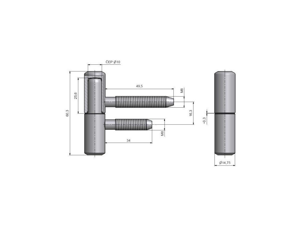 Závěs dveřní 60/10 M8 Zn komplet